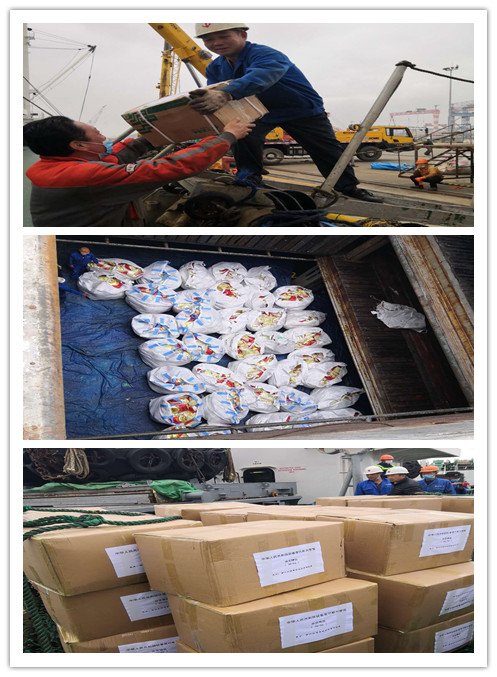 由于进出基里巴斯首都塔拉瓦的航班全部暂停,由广东省肇庆市捐赠的中方援基首批物资包括医用口罩、防护服、护目镜、医用手套、红外测温仪等如何顺利送达基里巴斯成了一道难题。受中国驻基里巴斯使馆的委托,运送首批援助物资这个光荣而又艰巨的任务交给了开创公司。公司领导了解情况后,高度重视、迅速响应,积极组织金枪鱼围网船队配套的冷冻货物运输船进行装运,要求海上指挥积极协调生产计划,将货物第一时间送达塔拉瓦。面对诸多不确定因素,两艘运输船载着抗疫医护物资和中方一片爱心向着基里巴斯出发,仅用了14天就抵达了目的地(当地政府要求运输船在海上航行需要自我隔离14天),顺利完成了任务,履行了企业责任,彰显了大国风范。