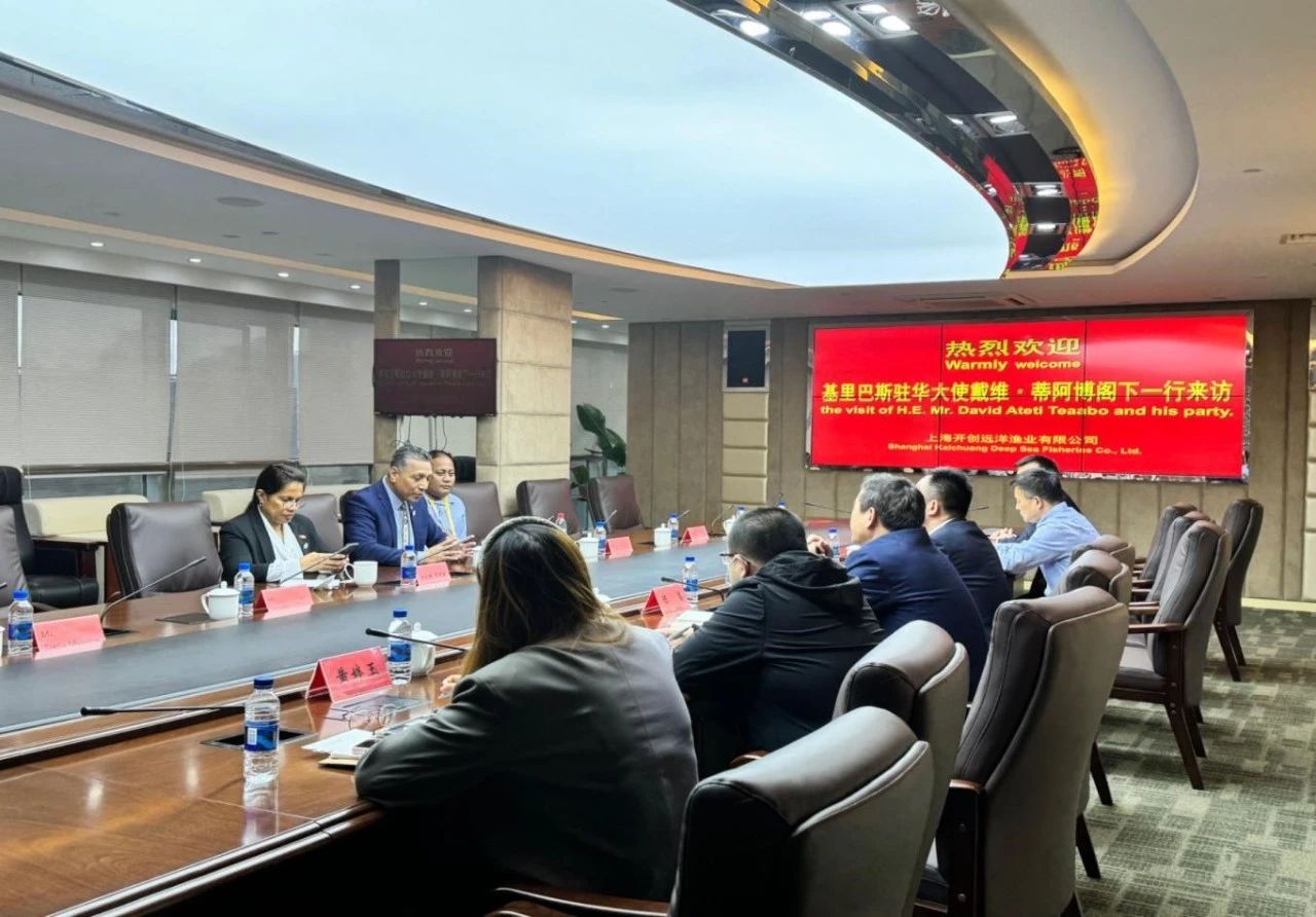 上海水产集团总裁、开创国际董事长王海峰对大使一行到访表示热烈欢迎,并向客人们介绍了水产集团的经济发展等情况。他说,上海水产与基里巴斯的交流合作有着良好基础,未来前景更加广阔。希望借大使来访之机,进一步深化上海水产和基里巴斯渔业的沟通与交流,开展更宽领域、更深层次的合作。