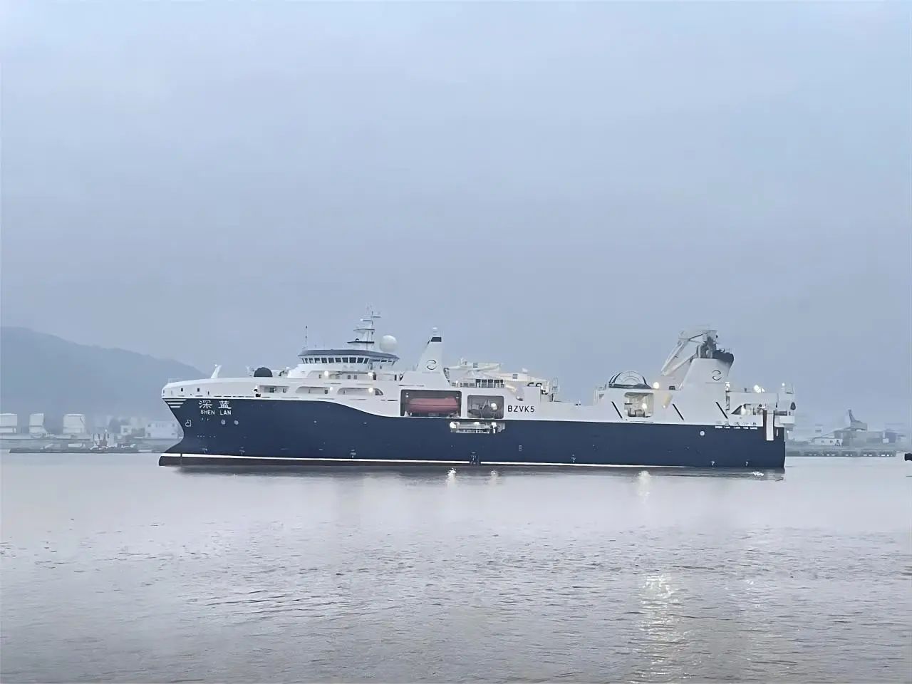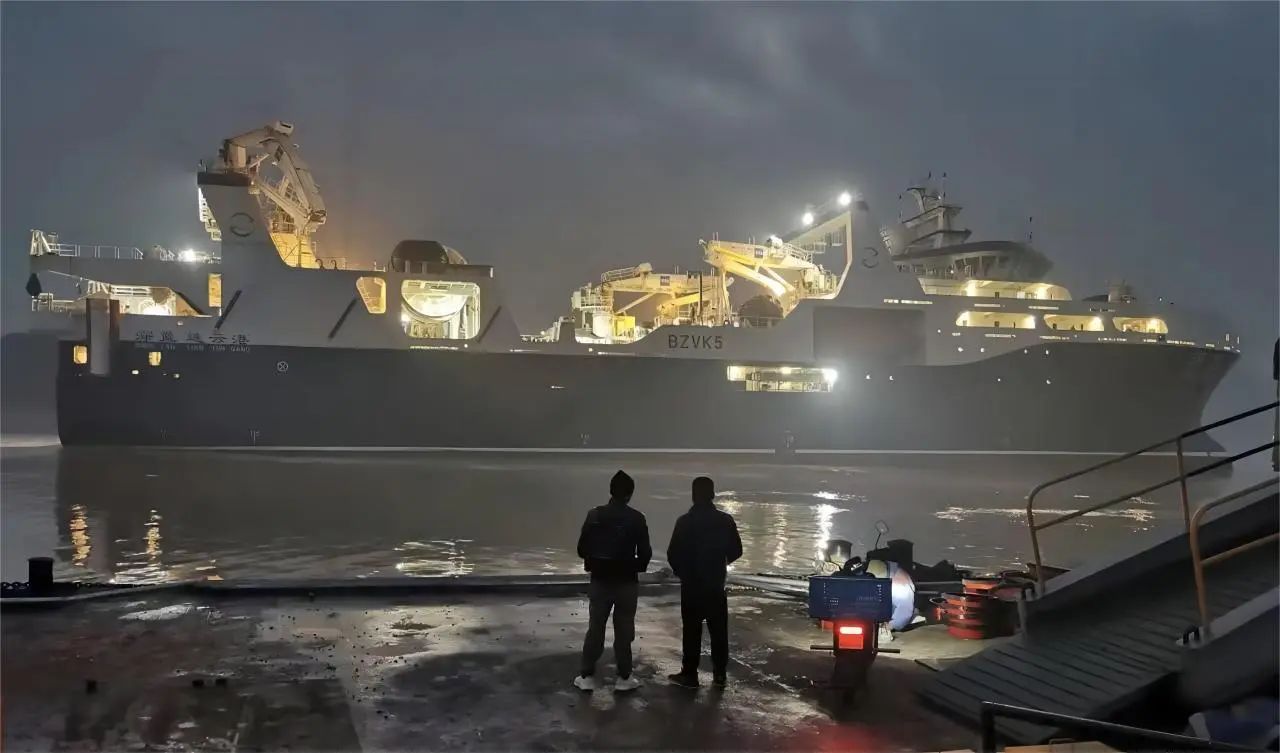 在完成年度修理保养工作后,2023年12月28日6时,深蓝轮从舟山顺利出航。