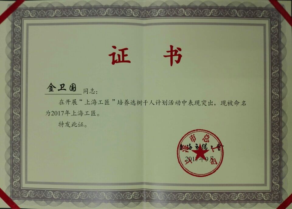 金卫国荣获2017年"上海工匠"称号